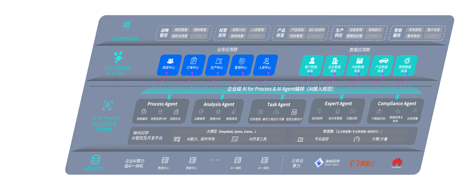 端到端的一站式AI工作空间深度融合了从企业战略规划到日常经营的全流程业务板块,,定向解决车企内部领域多、、、、部门多、、链条长、、、场景碎片化等难题,,,支持车企快速构建以AI为核心的生产力写作体系,,,实现任务执行与AI能力的无缝集成与交互